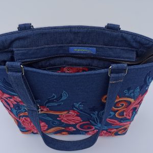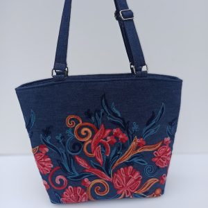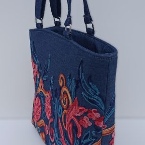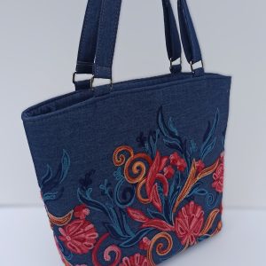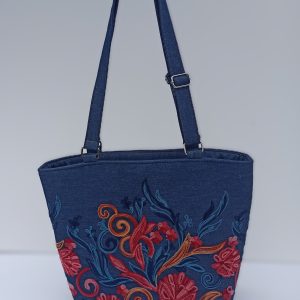 This exquisite handmade blue denim bag combines functionality and style beautifully.