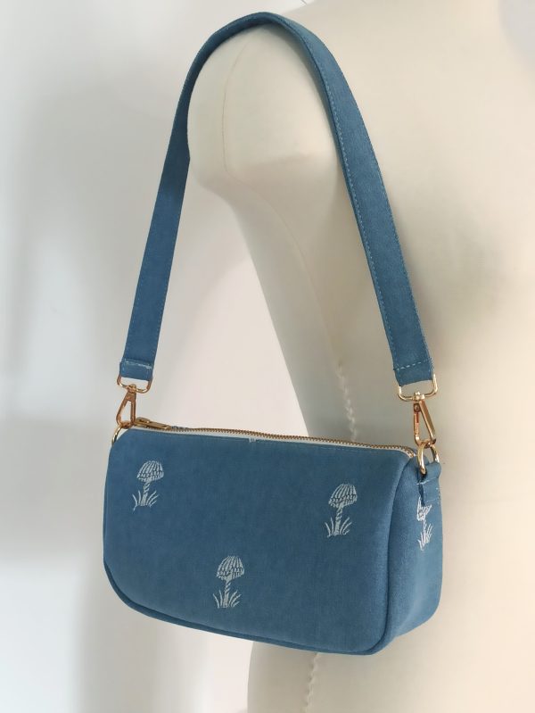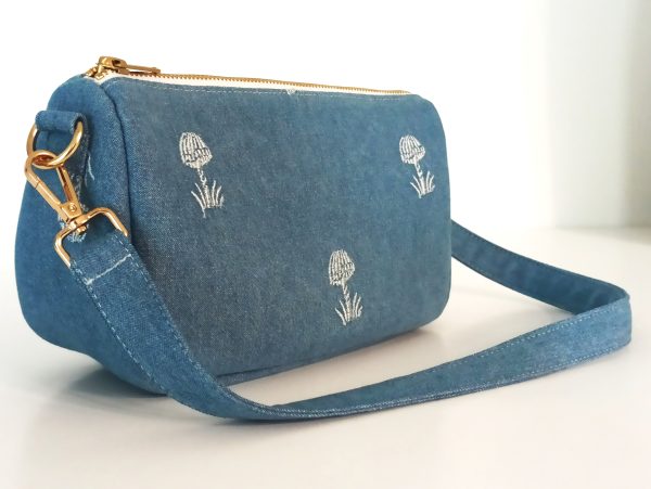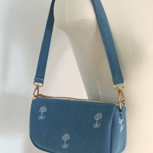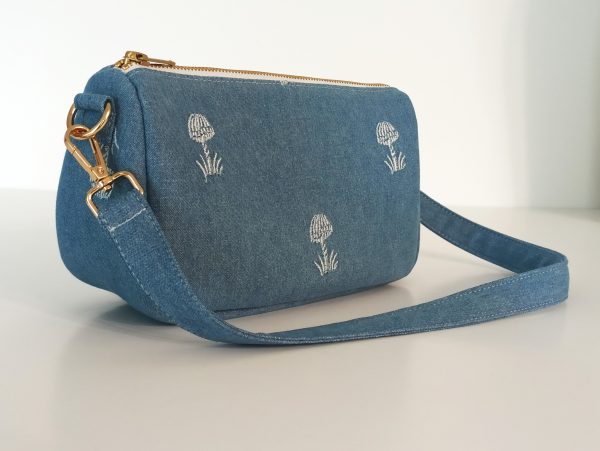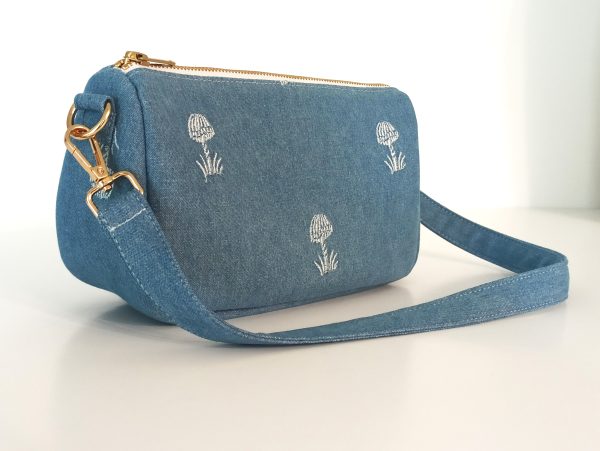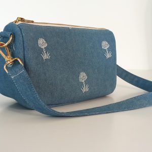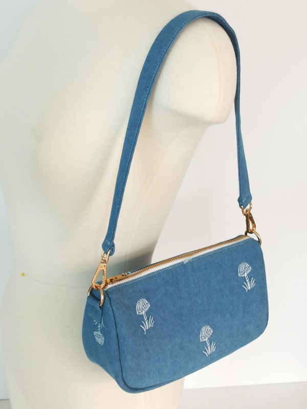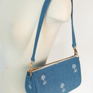 • blue denim with embroidery parttern.
